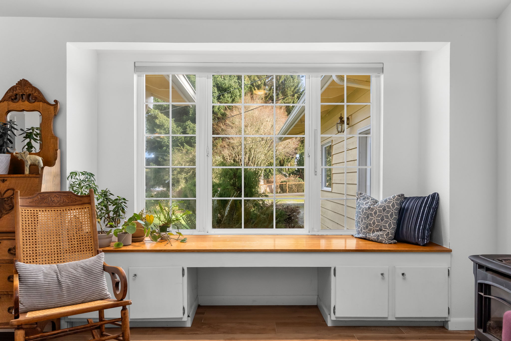 Set on a quiet street, just down the road from miles of trails on the Hansville Greenway, this 3-bed, 2-bath home offers a practical layout, flexible living space & a private, tree-backed setting on a .28-acre lot. The living room features vaulted ceilings, abundant natural light, a tucked in window seat along with a propane fireplace. Easy care durable ceramic tile plank flooring through the living room & hallway that provides the modern look of wood The kitchen & dining area open directly to a spacious deck, creating a seamless connection to outdoor Hansville living. The deck is surrounded by mature greenery, offering privacy & a peaceful backdrop for entertaining or everyday use. Includes a chicken coop, ready for backyard poultry. The primary bedroom provides a private bath & walk-in closet, with two additional bedrooms & an updated full hall bath that complete the home. The original garage has been converted into a finished bonus room with LVP flooring & a separate exterior entrance, adding approximately 150 sqft. of versatile space ideal for hobbies or a media room. Combined with the main living area, the home offers approximately 1,492 square feet of usable living space. A newer, larger detached garage provides parking for two vehicles plus a dedicated shop area for storage or projects. Comfortable, functional & surrounded by nature, this Kitsap Peninsula home offers room to live, work & explore—just minutes from trails, beaches & the quiet charm of Hansville.